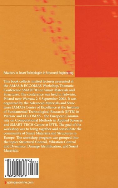 This book collects invited lectures presented and discussed on the AMAS & ECCOMAS Workshop/Thematic Conference SMART'o3. The SMART'o3 Conference on Smart Materials and Structures was held in a 19th century palace in Jadwisin near Warsaw, 2-5 September 2003, Poland .It was organized by the Advanced Materials and Structures (AMAS) Centre of Excellence at the Institute of Fundamental Technological Research (IFTR) in Warsaw,ECCOMAS - European Community on Computational Methods in Applied Sciences and SMART-TECH Centre at IFTR. The idea of the workshop was to bring together and consolidate the community of Smart Materials and Structures in Europe. The workshop was attended by 66 participants from n European countries (Austria, Belgium, Finland, France, Germany, Italy, Poland, Portugal, Spain, U.K., Ukraine), 1 participant from Israel and 1 participant from the USA. The workshop program was grouped into the following major topics: 4 sessions on Structural Control (18 presentations), 3 sessions on Vibration Controland Dynamics (14 presentations), 2 sessions on Damage Identification (10 presentations), 2 sessions on Smart Materials (9 presentations). Each session was composed of an invited lecture and some contributed papers. Every paper scheduled in the program was presented, so altogether 51 presentations were given. No sessions were run in parallel. The workshop was attended not only by researchers but also by people closely related to the industry. There were interesting discussions on scientific merits of the presented papers as well as on future development of the field and its possible industrial applications.