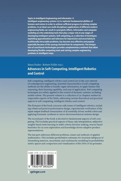 Soft computing, intelligent robotics and control are in the core interest of contemporary engineering. Essential characteristics of soft computing methods are the ability to handle vague information, to apply human-like reasoning, their learning capability and ease of application. Soft computing techniques are widely applied in the control of dynamic systems, including mobile robots. The present volume is a collection of 20 chapters written by respectable experts of the fields, addressing various theoretical and practical aspects in soft computing, intelligent robotics and control.