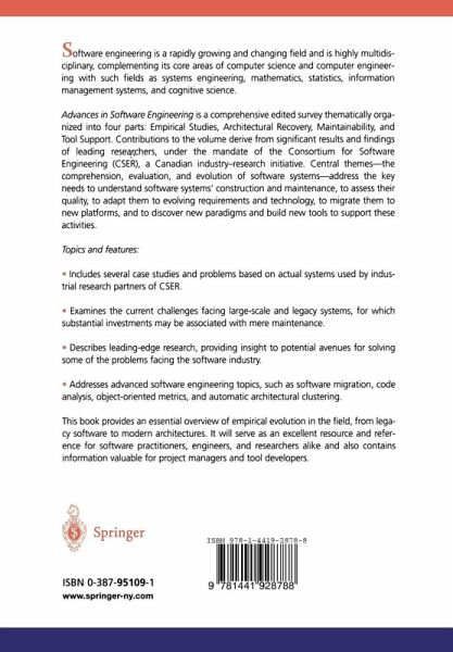 Software engineering is a rapidly growing and changing field. Over the last dec ade, it has gained significant popularity, and it is now heralded as a discipline of its own. This edited collection presents recent advances in software engineering in the areas of evolution, comprehension, and evaluation. The theme of the book addresses the increasing need to understand and assess software systems in order to measure their quality, maintain them, adapt them to changing requirements and technology, and migrate them to new platforms. This need can be satisfied by studying how software systems are built and maintained, by finding new paradigms, and by building new tools to support the activities involved in devel oping contemporary software systems. The contributions to the book are from major results and findings of leading researchers, under the mandate of the Consortium for Software Engineering Re search (CSER). CSER has been in existence since 1996. The five founding in dustrial and academic partners wanted to create a research environment that would appeal to the applied nature of the industrial partners, as well as to ad vance the state of the art and develop fresh expertise. The research projects of the Consortium are partially funded by the industrial partners, and partially by the Natural Sciences and Engineering Research Council of Canada. Technical and administrative management of the Consortium is provided by the National Research Council of Canada-specifically by members of the Software Engi neering Group ofthe Institute for Information Technology.