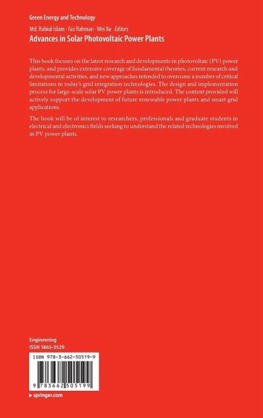 This book focuses on the latest research and developments in photovoltaic (PV) power plants, and provides extensive coverage of fundamental theories, current research and developmental activities, and new approaches intended to overcome a number of critical limitations in today's grid integration technologies. The design and implementation process for large-scale solar PV power plants is introduced. The content provided will actively support the development of future renewable power plants and smart grid applications.