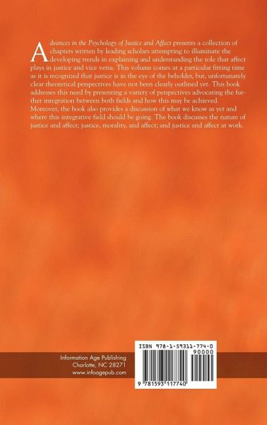 Advances in the Psychology of Justice and Affect presents a collection of chapters written by leading scholars attempting to illuminate the developing trends in explaining and understanding the role that affect plays in justice and vice versa. The book comes at a particular fitting time as it is recognized that justice is in the eye of the beholder, but, unfortunately clear theoretical perspectives have not been clearly outlined yet. This book addresses this need by presenting a variety of perspectives advocating the further integration between both fields and how this may be achieved. Moreover, the book also provides a discussion of what we know as yet and where this integrative field should be going. The book is divided in three parts discussing the nature of justice and affect, justice, morality and affect, and justice and affect at work. The market for this book is students, researchers in social psychology, organizational behavior and management, behavioral economics, philosophy, and other related social sciences fields. Graduate students and upper level undergraduates can make use of the book as a supplementary text.