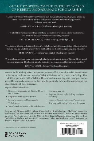 Advances in the Study of Biblical Hebrew and Aramaic by Benjamin J. Noonan examines issues of interest in the current world of Biblical Hebrew and Aramaic scholarship and their impact on understanding the Old Testament; it provides an accessible introduction for students, pastors, professors, and commentators to understand these important issues.