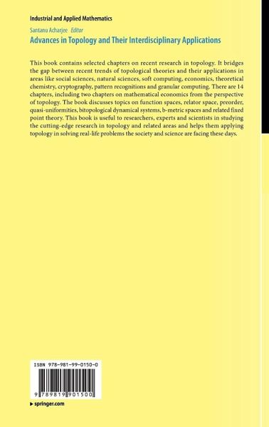 This book contains selected chapters on recent research in topology. It bridges the gap between recent trends of topological theories and their applications in areas like social sciences, natural sciences, soft computing, economics, theoretical chemistry, cryptography, pattern recognitions and granular computing. There are 14 chapters, including two chapters on mathematical economics from the perspective of topology. The book discusses topics on function spaces, relator space, preorder, quasi-uniformities, bitopological dynamical systems, b-metric spaces and related fixed point theory. This book is useful to researchers, experts and scientists in studying the cutting-edge research in topology and related areas and helps them applying topology in solving real-life problems the society and science are facing these days.