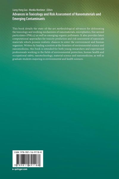 Chapter 1. Quantification and imaging of nanomaterials in biological samples.- Chapter 2. Tracing and quantifying microplastics in the environment.- Chapter 3. Advances in analytical methods of emerging contaminants.- Chapter 4. Advances in exposome.- Chapter 5. Omics approaches in toxicological studies.- Chapter 6. Recent developments in the eco- and human toxicology of nanomaterials.- Chapter 7. Characterization of nano-bio interactions in nanotoxicology.- Chapter 8. Knowledge gained from co-exposure studies of nanomaterials and chemicals.- Chapter 9. Ecotoxicology of micro- and nanoplastics.- Chapter 10. Advances in the toxicological studies of atmospheric particulate matter.- Chapter 11. Mechanisms of action of emerging contaminants: PPCP.- Chapter 12. Mechanisms of action of emerging contaminants: disinfection byproduct.- Chapter 13. Mechanisms of action of emerging contaminants: substituting industrial chemicals (BPs, flame retardants, PFCs).- Chapter 14. Status of risk assessment of emerging contaminants.- Chapter 15. Environmental risk assessment models for emerging contaminants.- Chapter 16. Developments in in silico risk assessment of nanomaterials and emerging contaminants.- Chapter 17. Application of adverse outcome pathways in risk assessment.