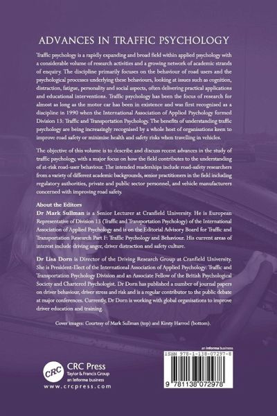 This volume describes and discusses recent advances in the study of traffic psychology, with a major focus on how the field contributes to the understanding of at-risk road-user behaviour. The intended readerships include road-safety researchers from a variety of different academic backgrounds, senior practitioners in the field including regulatory authorities, private and public sector personnel, and vehicle manufacturers concerned with improving road safety.