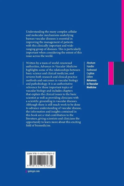 Genetics and Gene Therapy.- Oligonucleotide Therapeutics to Treat Dyslipoproteinemia and Atherosclerosis.- Gene Delivery to Cardiovascular Tissue.- Animal Models to Study Vascular Disease.- Animal Models of Scleroderma: From Cellular and Molecular Mechanisms to Novel Antifibrotic Strategies.- Animal Models of Atherosclerosis.- Animal Models of the Endothelin System.- Molecules and Mediators and Therapeutic Applications.- Endothelin-1 and Systemic Sclerosis.- The Role of the Homeodomain Transcription Factor Nkx2-5 in the Cardiovascular System.- Cell Therapy for Cardiovascular Disease.- Tissue-Engineered Vascular Substitutes: New Models Toward Successful Small Diameter Grafts.- Role of Perivascular Adipose Tissue in Vascular Function.- Endothelium: Dysfunction and Repair.- Clinical Aspects of Vascular Biology.- Chronic Thromboembolic Pulmonary Hypertension.- Pathophysiology of Chronic Thromboembolic Pulmonary Hypertension (CTEPH).- Surgical Management of Chronic Thromboembolic Pulmonary Hypertension (CTEPH).- Imaging in Acute and Chronic Pulmonary Thromboembolic Disease.- Vascular Disease in Connective Tissue Diseases.- PAH in CTD - Clinical Trials Criteria and Performance.- Disease Progression in Systemic Sclerosis Associated Pulmonary Arterial Hypertension.- Connective Tissue Disease Associated Pulmonary Arterial Hypertension: Special Cases?.- Advances in Vascular Medicine.- Cardiovascular Disease.- Coronary Heart Disease in Women.- Recent Strategies to Improve Graft Performance in Patients Undergoing Coronary Artery Bypass Surgery. Are Best Results Achieved by Improved Surgical Techniques of Graft Preparation?.- Cardiovascular Risk Prediction by Measurement of Arterial Elastic Properties and Wall Thickness.- The Metabolic Syndrome.