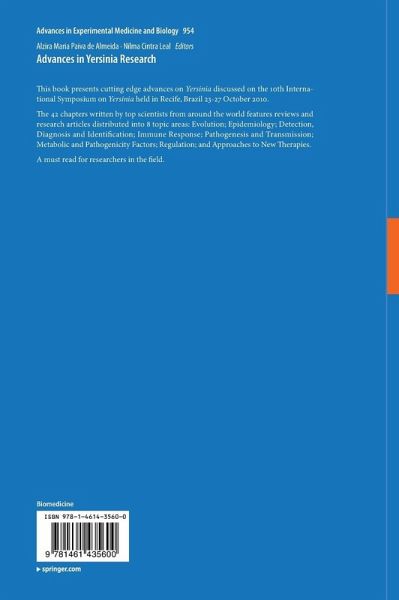 This book presents cutting edge advances on Yersinia discussed on the 10th International Symposium on Yersinia held in Recife, Brazil 23-27 October 2010. The 42 chapters written by top scientists from around the world features reviews and research articles distributed into 8 topic areas: Evolution; Epidemiology; Detection, Diagnosis and Identification; Immune Response; Pathogenesis and Transmission; Metabolic and Pathogenicity Factors; Regulation; and Approaches to New Therapies. A must read for researchers in the field.