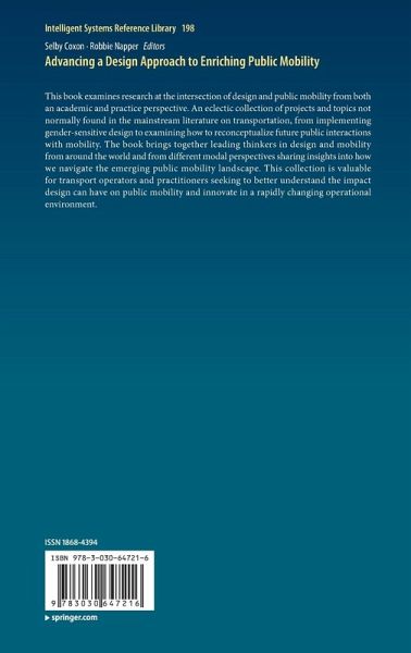 This book examines research at the intersection of design and public mobility from both an academic and practice perspective. An eclectic collection of projects and topics not normally found in the mainstream literature on transportation, from implementing gender-sensitive design to examining how to reconceptualize future public interactions with mobility. The book brings together leading thinkers in design and mobility from around the world and from different modal perspectives sharing insights into how we navigate the emerging public mobility landscape. This collection is valuable for transport operators and practitioners seeking to better understand the impact design can have on public mobility and innovate in a rapidly changing operational environment.