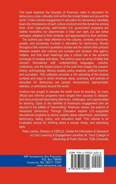 A volume in Education Policy in Practice: Critical Cultural Studies Series Editors Bradley A. U. Levinson, and Margaret Sutton, Indiana University This book explores the diversity of American roles in education for democracy cross-culturally, both within the United States and around the world. Cross-cultural engagement in education for democracy inevitably bears the impressions of each culture involved and the dynamics among them. Even high-priority, well-funded U.S. government programs are neither monolithic nor deterministic in their own right, but are rather reshaped, adapted to their contexts, and appropriated by their partners. These partners are sometimes called "recipients", a problematic label that gives the misleading impression that partners are relatively passive in the overall process. The authors pay close attention to the cultures, contexts, structures, people, and processes involved in education for democracy. Woven throughout this volume's qualitative studies are the notions that contacts between powers and cultures are complex and situated, that agency matters, and that local meanings play a critical role in the dynamic exchange of peoples and ideas. The authors span an array of fields that concern themselves with understanding languages, cultures, institutions, and the broad horizon of the past that shapes the present: history, anthropology, literacy studies, policy analysis, political science, and journalism. This collection provides a rich sampling of the diverse contexts and ways in which American ideas, practices, and policies of education for democracy are spread, encountered, appropriated, rejected, or embraced around the world. This volume introduces concepts, identifies processes, notes obstacles and challenges, and reveals common themes that can help us to understand American influence on education for democracy more clearly, wherever it occurs.