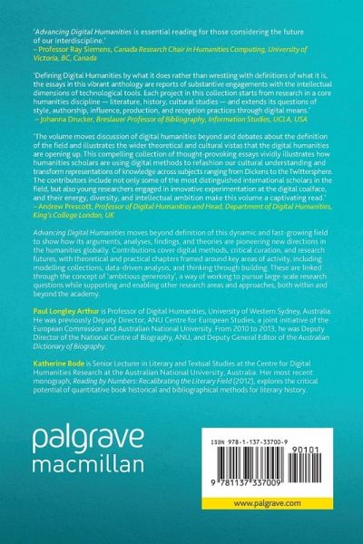 'Advancing Digital Humanities is essential reading for those considering the future of our interdiscipline." - Professor Ray Siemens, Canada Research Chair in Humanities Computing, University of Victoria, BC, Canada