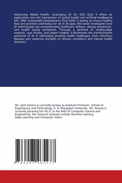 Advancing Global Health: Leveraging AI for SDG Goal 3 offers an exploration into the intersection of global health and artificial intelligence (AI). With Sustainable Development Goal (SDG) 3 aiming to ensure healthy lives and promote well-being for all at all ages, this book investigates how AI technologies are revolutionizing healthcare delivery, disease prevention, and health equity worldwide. Through a synthesis of cutting-edge research, case studies, and expert insights, it illuminates the transformative potential of AI in addressing pressing health challenges, from infectious diseases and maternal mortality to chronic conditions and mental health disorders.