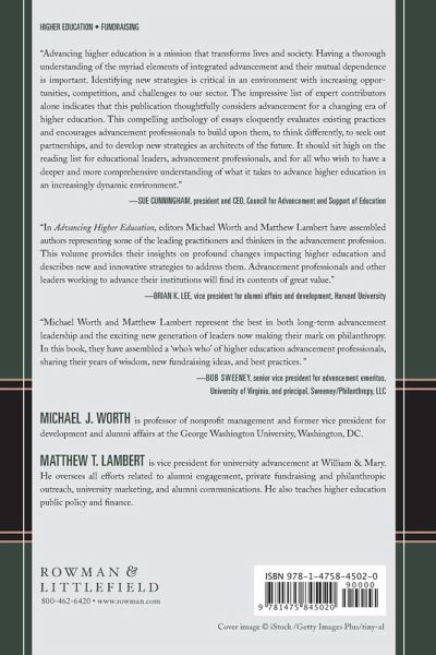 Michael J. Worth is Professor of Nonprofit Management and former Vice President for Development and Alumni Affairs at the George Washington University, Washington, DC. He also is Principal, Michael J. Worth & Associates, LLC, a fundraising consulting firm serving higher education and the nonprofit sector. Matthew T. Lambert is Vice President for University Advancement at William & Mary. He oversees all efforts related to alumni engagement, private fundraising and philanthropic outreach, university marketing and alumni communications. He also teaches higher education public policy and finance.