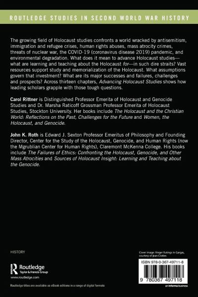 Carol Rittner is Distinguished Professor Emerita of Holocaust and Genocide Studies and Dr. Marsha Raticoff Grossman Professor Emerita of Holocaust Studies, Stockton University. Her books include The Holocaust and the Christian World: Reflections on the Past, Challenges for the Future and Women, the Holocaust, and Genocide. John K. Roth is Edward J. Sexton Professor Emeritus of Philosophy and Founding Director, Center for the Study of the Holocaust, Genocide, and Human Rights (now the Mgrublian Center for Human Rights), Claremont McKenna College. His books include The Failures of Ethics: Confronting the Holocaust, Genocide, and Other Mass Atrocities and Sources of Holocaust Insight: Learning and Teaching about the Genocide.