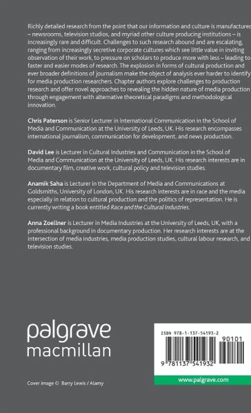 This anthology explores challenges to understanding the nature of cultural production, exploring innovative new research approaches and improvements to old approaches, such as newsroom ethnography, which will enable clearer, fuller understanding of the workings of journalism and other forms of media and cultural production.