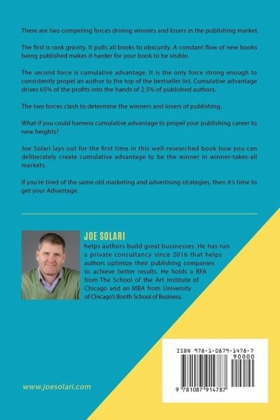 The Top 2.5% of high performing authors... ...earn 64% of the book profits. How do they do it? We are in the golden age for authors. The gatekeepers are gone. The books and novels that have been buried on your "Bucket List" can be brought to life. Nobody can tell you, "No!" It's not even that hard. Getting the readers, well, that's where we all need help. What are the KEY PRINCIPLES? Joe Solari has experience from 20-years as an entrepreneur and in 2016 began to help authors get to six and seven figures. It became his passion. He understands the engine that drives success. Are you willing to learn the power of cumulative advantage? He has shown that not only can cumulative advantage be systematized, but a unique flavor is possible for every author. This professionally researched book contains never before seen data on just how demand works in publishing and how the top authors become best sellers. Are you ready? You'll love this road map to finding readers, because the world is a vast social place and knowing how it works can make all the difference. Get it now.