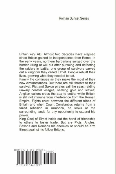 Britain 429 AD. Almost two decades have elapsed since Britain gained its independence from Rome. After initial devastation, people have begun to rebuild their lives. Family life continues as they make the most of their new circumstances. But there are still threats to their survival. Pict and Saxon pirates sail the seas, raiding unwary coastal villages, seeking gold and slaves; Anglian sailors cross the sea to settle; while Britain is still not immune from interference from the Roman Empire. Fights erupt between the different tribes of Britain and when Count Constantius returns from a failed rebellion in Armorica, he looks at the surrounding lands for any opportunity to expand his power. King Coel of Elmet holds out the hand of friendship to others to foster trade. But are Picts, Angles, Saxons and Romans his enemies or should he arm Elmet against his fellow Britons.