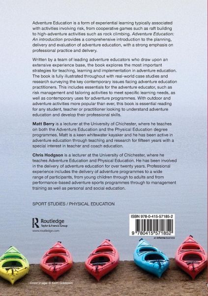 Adventure Education is a form of experiential learning typically associated with activities involving risk, from cooperative games such as raft building to high adventure activities such as rock climbing. Adventure Education: An Introduction provides a comprehensive introduction to the planning, delivery and evaluation of Adventure Education, with a strong emphasis on professional practice and delivery. Written by a team of leading Adventure Educators who can draw upon an extensive experience base, the book explores the most important strategies for teaching, learning and implementation in Adventure Education. The book is fully illustrated throughout with real-world case studies and research surveying the key contemporary issues facing Adventure Education Practitioners. This includes essentials for the adventure educator such as risk management and tailoring activities to meet specific learning needs, as well as providing an insight into contemporary uses for adventure programmes. With outdoor and adventure activities being more popular than ever before, this book is essential reading for any student, teacher or practitioner looking to understand Adventure Education and develop their professional skills.