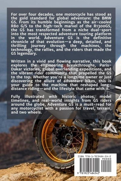 For over four decades, one motorcycle has stood as the gold standard for global adventure: the BMW GS. From its humble beginnings as the air-cooled R80 G/S to the high-tech marvel of the R1300GS, the GS has transformed from a niche dual-sport into the most respected adventure touring platform in the world. Adventure GS is the definitive chronicle of that evolution-a deep, detailed, and thrilling journey through the machines, the technology, the rallies, and the riders that made the GS legendary. Written in a vivid and flowing narrative, this book explores the engineering breakthroughs, Paris-Dakar victories, global overlanding expeditions, and the vibrant rider community that propelled the GS to the top. Whether you're a longtime owner or just discovering the allure of adventure bikes, this is your guide to the machine that reshaped long-distance riding-and the lifestyle that came with it. Fully illustrated with historic photos, model timelines, and real-world insights from GS riders around the globe, Adventure GS is a must-read for any motorcyclist with a passion for travel, terrain, and two wheels.