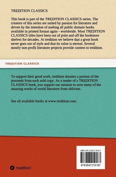 This book is part of the TREDITION CLASSICS series. The creators of this series are united by passion for literature and driven by the intention of making all public domain books available in printed format again - worldwide. At tredition we believe that a great book never goes out of style. Several mostly non-profit literature projects provide content to tredition. To support their good work, tredition donates a portion of the proceeds from each sold copy. As a reader of a TREDITION CLASSICS book, you support our mission to save many of the amazing works of world literature from oblivion.