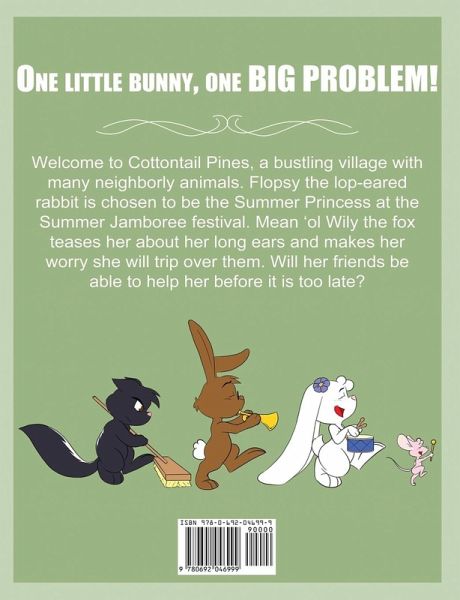 One little bunny, one BIG PROBLEM! Welcome to Cottontail Pines, a bustling village with many neighborly animals. Flopsy the lop-eared rabbit is chosen to be the Summer Princess at the Summer Jamboree festival. Mean 'ol Wily the fox teases her about her long ears and makes her worry she will trip over them. Will her friends be able to help her before it is too late? Adventures of Cottontail Pines is a beautiful book with 24 color illustrations by Coy Field II. It will make a great addition to any children's library.
