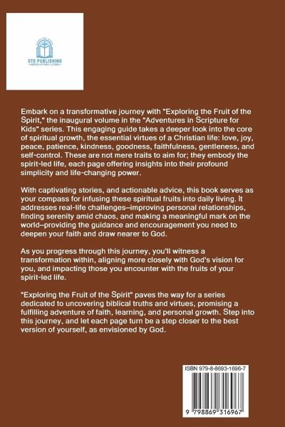 Dive into the heart of spiritual growth with "Exploring the Fruit of the Spirit," a guide that invites you on a vibrant journey to cultivate the qualities that are central to a fulfilling Christian life. This book unravels the profound simplicity and transformative power of love, joy, peace, patience, kindness, goodness, faithfulness, gentleness, and self-control. With each page, you'll discover how these fruits are not just virtues to aspire to but are the very essence of a life led by the Spirit. Through engaging narratives, thoughtful reflections, and practical applications, "Exploring the Fruit of the Spirit" offers a roadmap to nurturing these spiritual virtues in your everyday life. Whether you're navigating the challenges of relationships, seeking inner peace, or striving to make a positive impact in the world, this book provides the wisdom and encouragement needed to grow deeper in your faith and closer to God. As you embark on this journey, you'll find yourself moving closer to the person God has called you to be, bearing fruit that enriches your life and touches those around you. "Exploring the Fruit of the Spirit" is the first in the "Adventures in Scripture for Kids" six books series that takes you deeper into key biblical themes and stories, designed to enrich your spiritual journey and deepen your understanding of God's Word. Join us on this adventure of faith, discovery, and transformation.