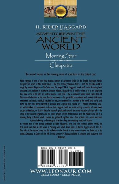 The second volume in this stunning series of adventures in the distant past Rider Haggard is one of the most famous authors of adventure fiction in the English language. Almost everyone has heard of Allan Quatermain-the hero of King Solomon's Mines-and the beautiful, ruthless, magically immortal Ayesha-She 'who must be obeyed.' All of Haggard's novels and stories featuring both characters are available in handsome Leonaur editions. Haggard was a prolific writer so it is not surprising that only a few of his titles are widely known-and read-by an audience which would enjoy them all. The essential elements of his most famous creations-the great African continent and ancient civilisations, mysterious and exotic, mythical, imagined or real, are combined in a number of his novels and stories and these too have now been collected by Leonaur into a special four volume set-African Adventures. Readers will therefore be unsurprised to learn that Haggard could not resist writing a number of tales about ancient civilisations, or that in these he naturally gravitated towards the most evocative of them all-the world of the Ancient Egyptians and the other peoples of the Mediterranean and the Middle East. This is a stunning body of fiction which Leonaur has gathered together into a four volume set-each successive volume following a chronological time-line along the sweeping march of history. In volume two of this special collection of Rider Haggard's foray into the fictional ancient world, the first novel and third in the series is Morning Star which takes place in Ancient Egypt around 332 BC. The title of the second novel in this collection-the fourth in the series-leaves no doubt as to its subject: Cleopatra is Queen of the Nile in first century BC Egypt. Leonaur editions are newly typeset and are not facsimiles; each title is available in softcover and hardback with dustjacket.