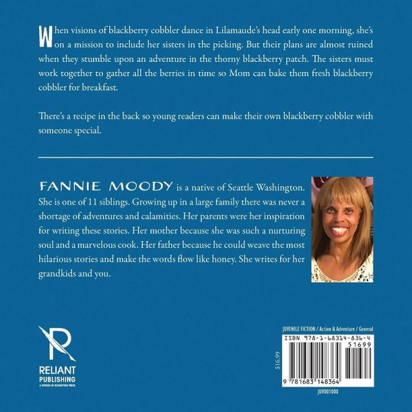 When visions of blackberry cobbler dance in Lilamaude's head early one morning, she's on a mission to include her sisters in the picking. But their plans are almost ruined when they stumble upon an adventure in the thorny blackberry patch. The sisters must work together to gather all the berries in time so Mom can bake them fresh blackberry cobbler for breakfast. There's a recipe in the back so young readers can make their own blackberry cobbler with someone special.