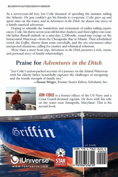As a seven-year-old boy, Jon Coile dreamed of spending the summer sailing Author of Evolution of an Xmas Letter the Atlantic. He just couldn't get his friends to cooperate. Coile grew up and spent time on the water, and in Adventures in the Ditch, he shares one story of a family nautical adventure. Hoping to rekindle the wanderlust and excitement of earlier sailing experiences, Coile, his thirty-seven-year-old brother Andrew, and their eighty-one-year-old father Russell embark on a nine-day, 2,500-mile, round-trip voyage on the Intracoastal Waterway-from the Chesapeake Bay to Miami. Their refurbished vessel, the Griffin, throws them some curveballs, and the trio encounters other unexpected situations, calling for creative and whimsical solutions. More than a mere boat trip, Adventures in the Ditch presents a rich, warm, and personal story of family relationships. Praise for Adventures in the Ditch "Jon Coile's action-packed account of a journey on the Inland Waterway with his elderly father beautifully captures the challenges of navigating and the tensile strength of family ties." -Susan Moger, Former Senior Editor, Scholastic Inc.
