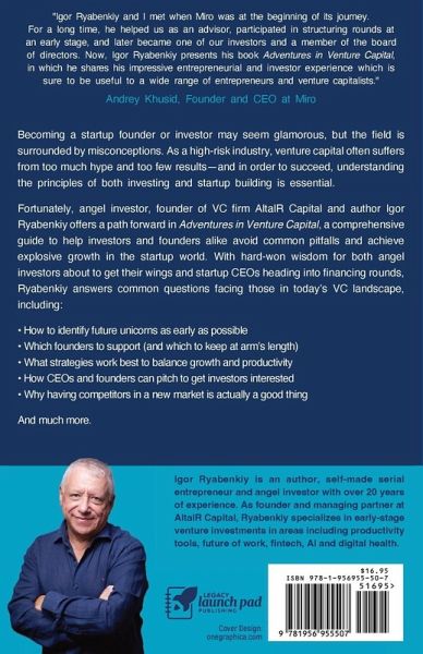 Becoming a startup founder or investor may seem glamorous, but the field is surrounded by misconceptions. As a high-risk industry, venture capital often suffers from too much hype and too few results-and in order to succeed, understanding the principles of both investing and startup building is essential. Fortunately, angel investor, founder of VC firm AltalR Capital and author Igor Ryabenkiy offers a path forward in Adventures in Venture Capital, a comprehensive guide to help investors and founders alike avoid common pitfalls and achieve explosive growth in the startup world.¿ Drawing on Ryabenkiy's years of experience both growing and exiting successful tech businesses, Adventures in Venture Capital uses real examples to help readers navigate the startup world, and to ensure that their investments result in desired returns rather than dashed expectations. With hard-won wisdom for both angel investors about to get their wings and startup CEOs heading into financing rounds, Adventures in Venture Capital answers common questions facing those in today's VC landscape, including: -How to identify future unicorns as early as possible -Which founders to support (and which to keep at arm's length) -What strategies work best to balance growth and productivity -How CEOs and founders can pitch to get investors interested -Why having competitors in a new market is actually a good thing And much more. With sharp humor and incisive analysis, Ryabenkiy shares just how he's been able to become a successful investor across industries, language barriers and continents. For anyone hoping to set sail into the startup world, Adventures in Venture Capital is both a compass and a life raft.
