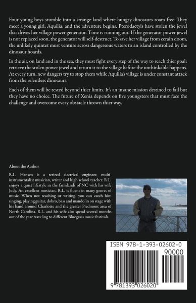 Four young boys stumble into a strange land where hungry dinosaurs roam free. They meet a young girl, Aquilia, and the adventure begins. Pterodactyls have stolen the jewel that drives her village power generator. Time is running out. If the generator power jewel is not replaced soon, the generator will self-destruct. To save her village from cerain doom, the unlikely quintet must venture across dangersous waters to an island controlled by the dinosaur hoards. In the air, on land and in the sea, they must fight every step of the way to reach thier goal: retrieve the stolen power jewel and return it to the village before the unthinkable happens. At every turn, new dangers try to stop them while Aquilia's village is under constant attack from the relentless dinosaurs. Each of them will be tested beyond thier limits. It's an insane mission destined to fail but they have no choice. The future of Xenia depends on five youngsters that must face the challenge and overcome every obstacle thrown thier way.