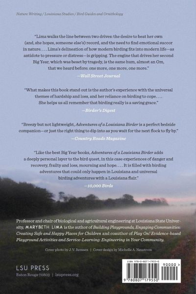 This candid and humorous chronicle shows how one woman goes from casual observer to obsessive bird nerd as she traverses Louisiana's avian paradise. In Adventures of a Louisiana Birder, readers follow Marybeth Lima across her adopted state in search of 300 species of birds. Bisected by the Mississippi flyway and home to 400 miles of coast, Louisiana has a variety of habitats, which serve as a beautiful backdrop to this remarkable journey. In birding circles, some devotees attempt what is known as a "big year," a bird-sighting challenge to identify as many bird species as possible in a particular geographical area over the course of one year. Lima's initial effort amounted to 11,626 miles in sixty-one road trips to log an impressive 280 species. But on a subsequent quest to exceed her record, she endures elusive birds, embarrassing misidentifications, and hungry insects in an effort to reach her goal. In the midst of these obstacles, Lima celebrates the camaraderie and friendly competition among fellow birders, from novices to a world-renown ornithologist. Requiring both mental focus and physical agility, birdwatching becomes an active sport through Lima's narration. She vividly conveys the elation over a rare species seen or heard and the disappointment when one is narrowly missed. An appendix provides the location and date of every species she identifies. Lima's personal experiences are interwoven with the excitement of tracking down one intriguing species after another. She faces a near-fatal burn accident to her spouse, end-of-life care for her mother-in-law, and Louisiana's great flood of 2016. In the midst of these situations, her devotion to birding provides a much-needed outlet. "Somewhere in the roiling confluence of birds, locales, and human personalities," writes Lima, "the center of my heart sings with utter abandon." Adventures of a Louisiana Birder is the author's call to a deeper passion for and awareness of Louisiana's unique natural beauty and vulnerability.