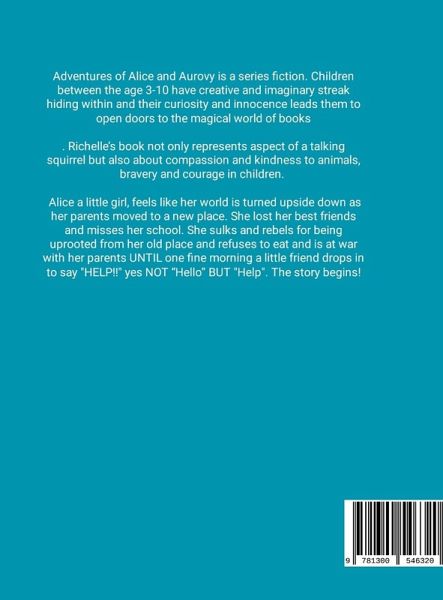 The Adventures of Alice and Aurovy is a five-part series into the magical world of Alice and her new found squirrel Aurovy. Alice a little girl, feels like her world is turned upside down as her parents moved to a new place. She feels its unfair that her parents have to uproot her from her old school and bring her to a place that everybody is in awe of.....she wonders what is so great about this place. All she could see was huge trees everywhere, little fountains here and there in few places , old cottage houses. She is not happy about it She lost her best friends and misses her school. She sulks and rebels for being uprooted from her old place and refuses to eat and is at war with her parents UNTIL one fine morning a little friend drops in to say "HELP!!" yes not hello but "Help". She turns to see who and what does she find? A squirrel that ACTUALLY talks??.... The story begins!