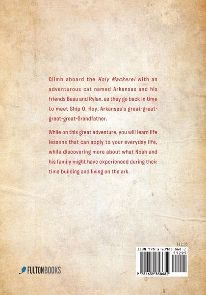 Climb aboard the Holy Mackerel with an adventurous cat named Arkansas and his friends Beau and Rylan as they go back in time to meet Ship O. Hoy, Arkansas's great-great-great-great-grandfather who was on the ark with Noah. While on this great adventure, you will learn life lessons that can apply to your everyday life while discovering more about what Noah and Ship O. Hoy experienced when they built the ark and in the time they spent on the ark during the great flood.