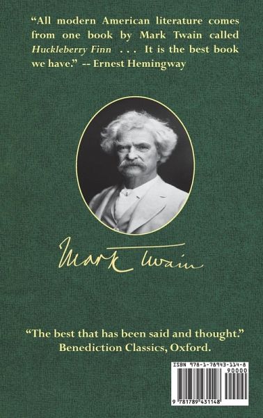 ADVENTURES OF HUCKLEBERRY FINN. Complete and unabridged. Includes 174 original illustrations and original cover. Crisp text set in modern easily read font. Mark Twain's characters are surprising, unforgettable and truly human. The character Huckleberry Finn is based on one of Twain's childhood friends. Twain writes "In Huckleberry Finn I have drawn Tom Blankenship exactly as he was. He was ignorant, unwashed, insufficiently fed; but he had as good a heart as ever any boy had. His liberties were totally unrestricted. He was the only really independent person-boy or man-in the community, and by consequence he was tranquilly and continuously happy and envied by the rest of us. And as his society was forbidden us by our parents, the prohibition trebled and quadrupled its value, and therefore we sought and got more of his society than any other boy's." It is little surprise then that children are perennially drawn to Huck and his adventures. The dialogue faithfully reproduces the common speech of his day. Twain explains, "In this book a number of dialects are used, to wit: the Missouri negro dialect; the extremest form of the backwoods Southwestern dialect; the ordinary 'Pike County' dialect; and four modified varieties of this last. The shadings have not been done in a haphazard fashion, or by guesswork; but painstakingly, and with the trustworthy guidance and support of personal familiarity with these several forms of speech." The plot combines adventure, suspense and mischief with the darker side of humanity: murder, deceit, brutality and racial prejudice. It is a great adventure story and much more, enlivened by Twain's trademark humor and observations of human nature. Mark Twain, the pen name of Samuel Langhorne Clemens (November 30, 1835 - April 21, 1910) was an American writer, humorist, entrepreneur, publisher, and lecturer. He was lauded as the "greatest humorist the United States has produced," and William Faulkner called him "the father of American literature". This original edition contains E. W. Kemble's 174 original illustrations and the original cover. Twain's record of reported speech precisely captures the language of the Antebellum South, and so, as one might expect, there are words that are unacceptable today. Since times have changed, these have also been changed, but otherwise the text is original.