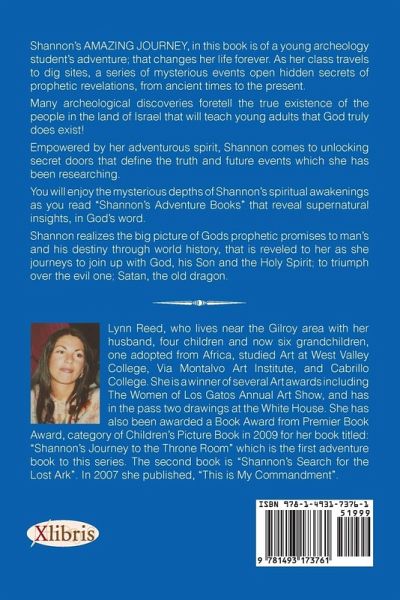 Shannon's AMAZING JOURNEY, in this book is of a young archeology student's adventure; that changes her life forever. As her class travels to dig sites, a series of mysterious events open hidden secrets of prophetic revelations, from ancient times to the present. Many archeological discoveries foretell the true existence of the people in the land of Israel that will teach young adults that God truly does exist! Empowered by her adventurous spirit, Shannon comes to unlocking secret doors that define the truth of 9/11 and future events including the coming Four Blood Moons called Tetrad and 7 year cycles called Shemitah years. You will enjoy the mysterious depths of Shannon's spiritual awakenings as you read "Shannon's Adventure Books" that reveal supernatural insights, in God's word. Shannon realizes the big picture of Gods prophetic promises to man's and his destiny through world history, that is reveled to her as she journeys to join up with God, his Son and the Holy Spirit; to triumph over the evil one; Satan, the old dragon.