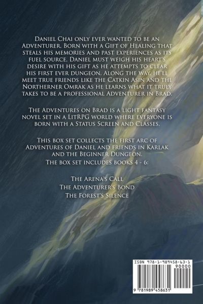 Daniel Chai only ever wanted to be an Adventurer. Born with a Gift of Healing that steals his memories and past experiences as its fuel source, Daniel must weigh his heart's desire with his gift as he attempts to clear his first ever dungeon. Along the way, he'll meet true friends like the Catkin Asin and the Northerner Omrak as he learns what it truly takes to be a professional Adventurer in Brad. The Adventures on Brad is a light fantasy novel set in a LitRPG world where everyone is born with a Status Screen and Classes. This box set collects the second arc of Adventures of Daniel and friends in Karlak and the Beginner Dungeon. The box set includes books 4 - 6: - The Arena's Call - The Adventurer's Bond - The Forest's Silence