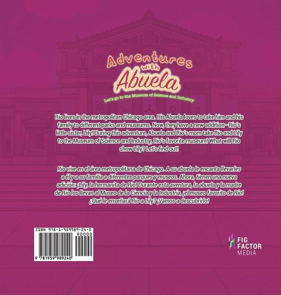 Rio lives in the metropolitan Chicago area. His Abuela loves to take him and his family to different parks and museums. Now, they have a new addition-Rio's little sister, Lily! During this adventure, Abuela and Rio's mom take Rio and Lily to the Museum of Science and Industry, Rio's favorite museum! What will Rio show Lily? Let's find out! ¿Rio vive en el área metropolitana de Chicago. A su abuela le encanta llevarles a él y a su familia a diferentes parques y museos. Ahora, tienen una nueva adición: ¡Lily, la hermanita de Rio! Durante esta aventura, la abuela y la madre de Río los llevan al Museo de la Ciencia y la Industria, ¡el museo favorito de Río! ¿Qué le enseñará Rio a Lily? ¡Vamos a descubrirlo!