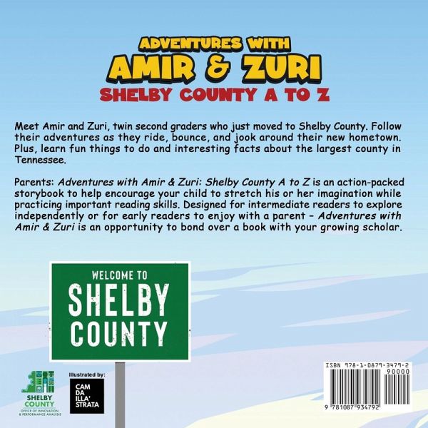 Meet Amir and Zuri, twin second graders who just moved to Shelby county. Follow their adventures as they ride, bounce, and jook around their new hometown. Plus, learn fun things to do and interesting facts about the largest County in Tennessee. Parents: Adventures with Amir & Zuri: Shelby County A to Z is an action-packed storybook to help encourage your child to stretch his or her imagination while practicing important reading skills. Designed for intermediate readers to explore independently and for early readers to enjoy with a parent "Adventures with Amir & Zuri" is an opportunity to bond over a book with your growing scholar.