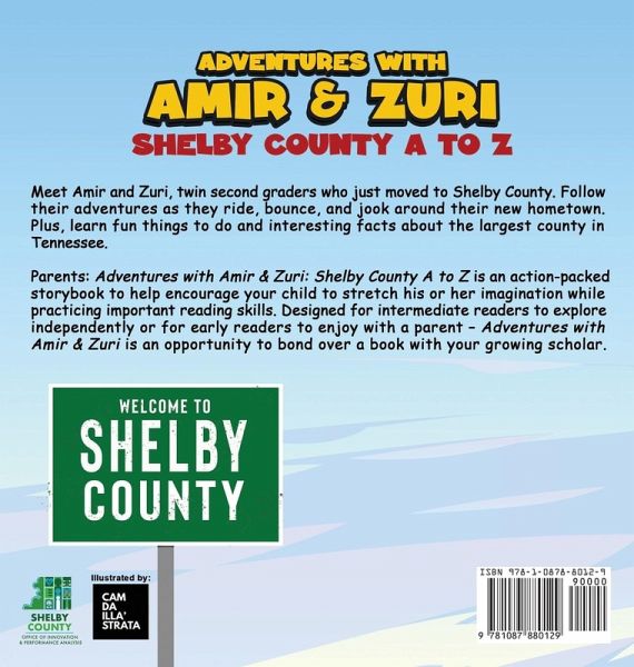 Meet Amir and Zuri, twin second graders who just moved to Shelby County. Follow their adventures as they ride, bounce, and jook around their new hometown. Plus, learn fun things to do and interesting facts about the largest county in Tennessee. Parents: Adventures with Amir & Zuri: Shelby County A to Z is an action-packed storybook to help encourage your child to stretch his or her imagination while practicing important reading skills. Designed for intermediate readers to explore independently and for early readers to enjoy with a parent "Adventures with Amir & Zuri" is an opportunity to bond over a book with your growing scholar.