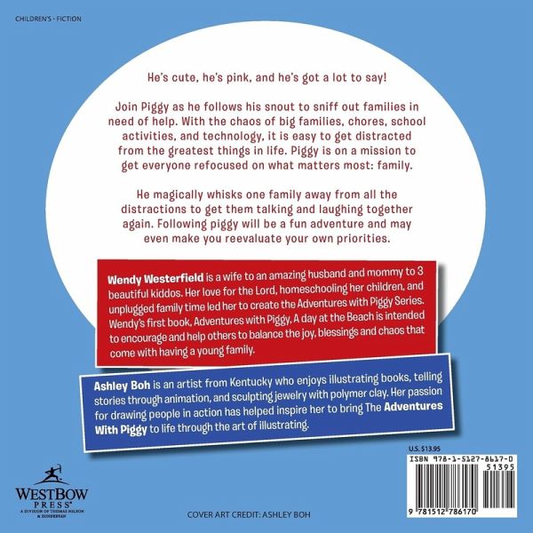 He's cute, he's pink, and he's got a lot to say! Join Piggy as he follows his snout to sniff out families in need of help. With the chaos of big families, chores, school activities, and technology, it is easy to get distracted from the greatest things in life. Piggy is on a mission to get everyone refocused on what matters most: family. He magically whisks one family away from all the distractions to get them talking and laughing together again. Following piggy will be a fun adventure and may even make you reevaluate your own priorities.