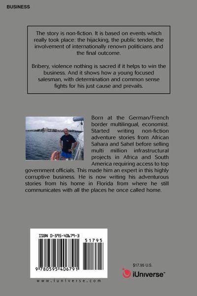 The story is non-fiction. It is based on events which really took place: the hijacking, the public tender, the involvement of internationally renown politicians and the final outcome. Bribery, violence nothing is sacred if it helps to win the business. And it shows how a young focused salesman, with determination and common sense fights for his just cause and prevails.