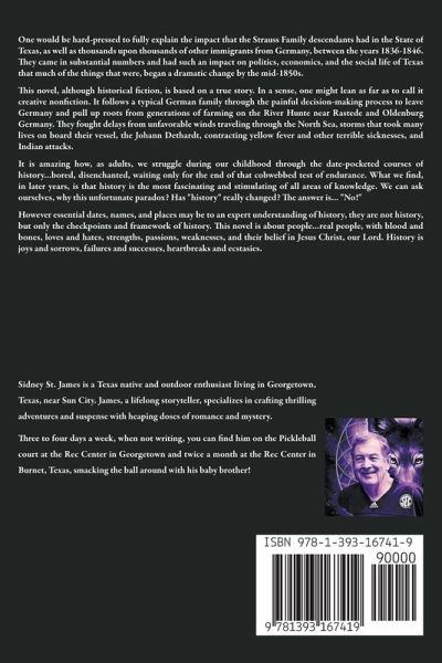 From the pen of Sidney St. James-author of over 100 novels-comes the unforgettable beginning of a powerful legacy. Adversity - Keeping the Faith is more than a historical novel. It's a soul-stirring journey rooted in truth, drawn from the lived experiences of the Struss family, German pioneers who left behind everything familiar in 1845 to chase hope across the Atlantic and into the unbroken wilds of Texas. This is the story of Johann, his devoted wife Mary, and their sons Johnnie and Carl-names and places not plucked from imagination but etched in the annals of Texas's early settlement history. From the fog-laced cemeteries of Frelsburg to the wind-swept prairies of Columbus, their courage shaped the land that would one day shape them. Set against a backdrop of war-torn Europe and unfolding frontier uncertainty, their voyage aboard the Johann Dethardt is nothing short of epic. Battling violent Atlantic gales, a deadly yellow fever outbreak, and the spiritual weight of leaving home behind, they press forward-driven not by the promise of ease, but by the power of faith. Here, readers will walk beside them-through the perilous heart of Indian country, through tear-streaked nights of loss, and into the dawn of new community, forged by prayer, plow, and perseverance. As they raise homes with their neighbors, celebrate under starlit Texas skies, and cling to one another around candlelit Christmas trees, the Struss family's triumphs become timeless. This is Texas as you've never seen it-not just cattle and Comanches, but creeds and convictions. Not just rugged survival, but the sacred act of starting over. If you cherish stories that stir your soul, if you believe in the strength of family and the power of God's promises, then Adversity - Keeping the Faith is your next must-read. A historical epic with a beating heart, it reminds us that in every trial, there is triumph-and in every dark night, the light of dawn.
