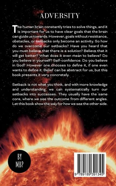 Adveristy Not what you think what if all that you belive is not what you thinlk The human brain constantly tries to solve things, and it is important for us to have clear goals that the brain can guide us towards. However, goals without resistance, obstacles, or setbacks only become an activity. So how do we overcome our setbacks? Have you heard that you must believe that there is a solution? Believe that it will get better? What does it even mean to believe? Do you believe in yourself? Self-confidence. Do you believe in God? However one chooses to define it, if one even wants to define it. Belief can be abstract for us, but this book presents it very concretely. Setback is not what you think, and with more knowledge and understanding, we can systematically turn our setbacks into successes. They usually have the same core, where we see the outcome from different angles. Let this book show the way for how we see the other side.