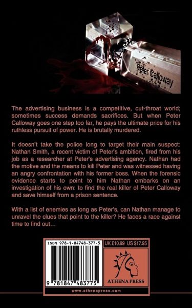 The advertising business is a competitive, cut-throat world; sometimes success demands sacrifices. But when Peter Calloway goes one step too far, he pays the ultimate price for his ruthless pursuit of power. He is brutally murdered. It doesn¿t take the police long to target their main suspect: Nathan Smith, a recent victim of Peter¿s ambition, fired from his job as a researcher at Peter¿s advertising agency. Nathan had the motive and the means to kill Peter and was witnessed having an angry confrontation with his former boss. When the forensic evidence starts to point to him Nathan embarks on an investigation of his own: to find the real killer of Peter Calloway and save himself from a prison sentence. With a list of enemies as long as Peter¿s, can Nathan manage to unravel the clues that point to the killer? He faces a race against time to find out¿