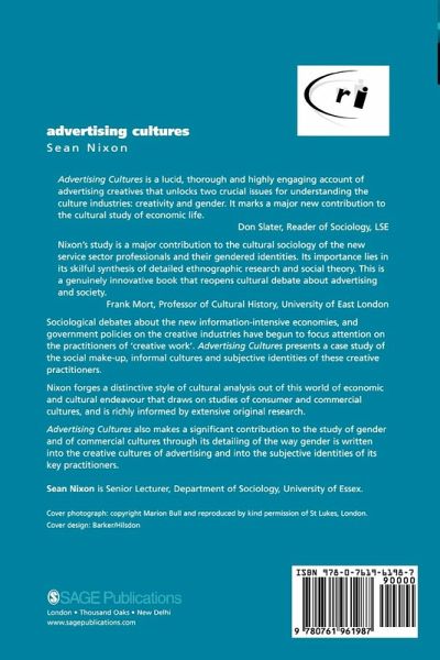 The economic and cultural role of the `creative industries' has gained a new prominence and centrality in recent years. These worlds are explored here through the most emblematic creative industry: advertising. Advertising Cultures presents a case-study of the social make-up, informal cultures and subjective identities of these creative practices.