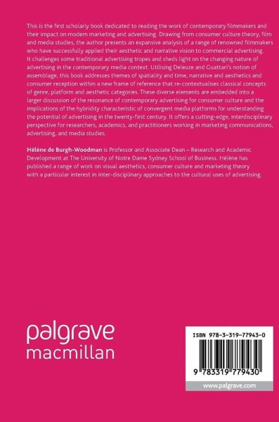This is the first scholarly book dedicated to reading the work of contemporary filmmakers and their impact on modern marketing and advertising. Drawing from consumer culture theory, film and media studies, the author presents an expansive analysis of a range of renowned filmmakers who have successfully applied their aesthetic and narrative vision to commercial advertising. It challenges some traditional advertising tropes and sheds light on the changing nature of advertising in the contemporary media context. Utilising Deleuze and Guattari's notion of assemblage, this book addresses themes of spatiality and time, narrative and aesthetics and consumer reception within a new frame of reference that re-contextualises classical concepts of genre, platform and aesthetic categories. These diverse elements are embedded into a larger discussion of the resonance of contemporary advertising for consumer culture and the implications of the hybridity characteristic of convergent media platforms for understanding the potential of advertising in the twenty-first century. It offers a cutting-edge, interdisciplinary perspective for researchers, academics, and practitioners working in marketing communications, advertising, and media studies.