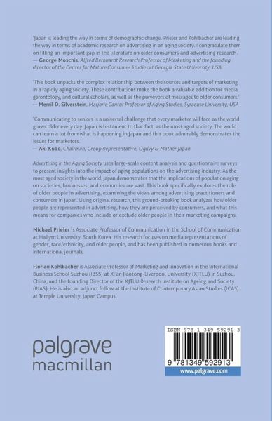 Population aging is a powerful megatrend affecting many countries around the world. This demographic shift has vast effects on societies, economies and businesses, and thus also for the advertising industry. Advertising in the Aging Society presents insights from a large-scale content analysis as well as questionnaire surveys among advertising practitioners and consumers in Japan. As the most aged society in the world, Japan lends itself as particularly suitable to study the implications of population aging. This book shows that older people, and especially older women, are highly underrepresented in advertising and are generally portrayed in stereotypical, albeit not necessarily unfavorable ways. This is despite the fact that advertising practitioners have a generally positive view towards using older models, even though only for an older target audience. Finally the book explore how both younger and older consumers perceive the representation of older people in advertisingas stereotypical and partly negative, and are willing to boycott companies portraying older people negatively.