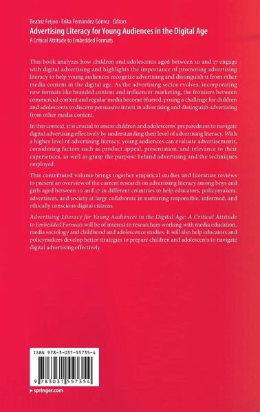 This contributed volume brings together empirical studies and literature reviews to present an overview of the current research on advertising literacy among boys and girls aged between 10 and 17 in different countries to help educators, policymakers, advertisers, and society at large collaborate in nurturing responsible, informed, and ethically conscious digital citizens.