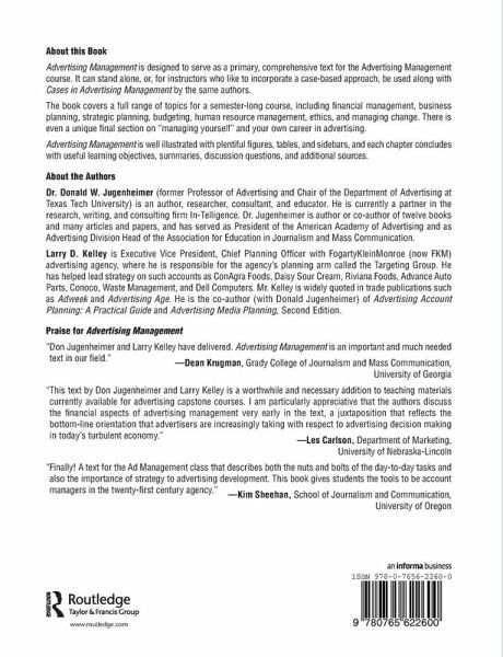 Suitable for the Advertising Management course, this book follows the more general Principles of Advertising course. It covers a range of topics for a semester-long course, including financial management, business planning, strategic planning, budgeting, human resource management, ethics, and managing change.