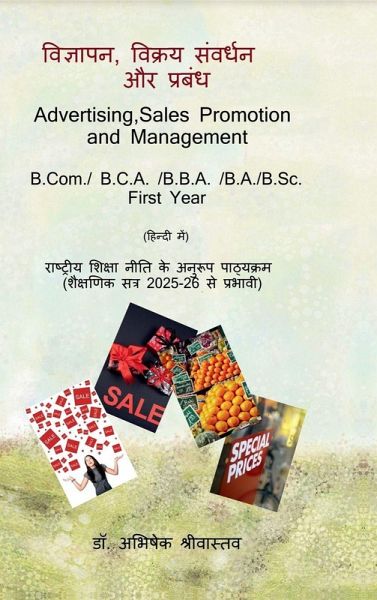 This book, "Advertising, Sales Promotion and Management", has been designed in alignment with the National Education Policy (NEP), effective from the academic session 2025-26. It is specially written for students of B.Com., B.C.A., B.B.A., B.A., and B.Sc. First Year. Key Features of the Book: Systematic presentation of concepts, development, types, media, budget, ethical aspects, and message creation in advertising. Each chapter includes summaries, tables, practical examples, and question banks. Real-life examples drawn from various Indian states and cities, making the subject more relatable and practical. Written in simple and student-friendly Hindi language, ensuring easy understanding for learners. This book is not only valuable from the examination perspective but also helps students to understand the practical aspects of advertising and sales promotion, thereby preparing them for their academic as well as professional future.